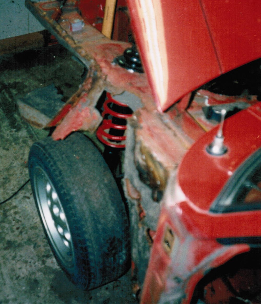 Having a dig around with a screwdriver, it was now quite obvious that the nearside was as bad as the drivers side, so on with the Capri suspension, and off with the other wing.