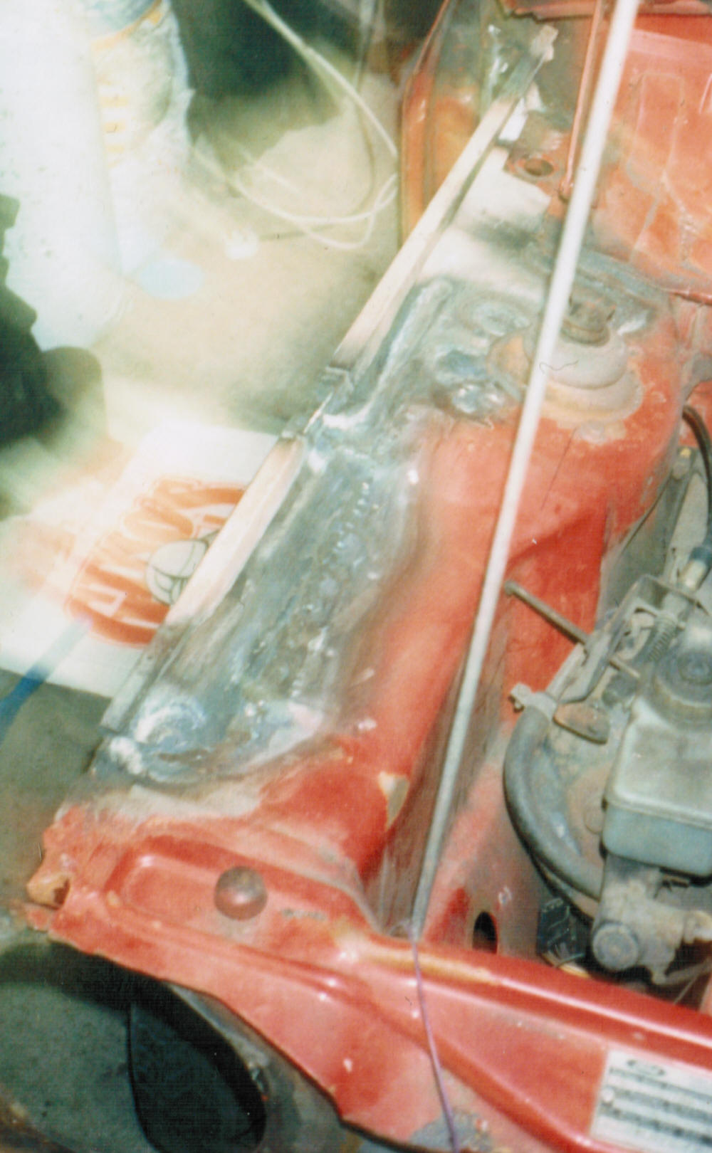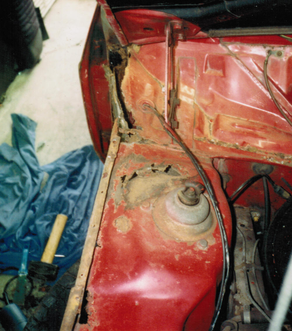 After starting to cut out the rot I started to wonder if I was doing the right thing, I seemed to have more holes than car, A neighbour donated a pile of steel sheet shelving units that had a similar thickness to the removed metal, so many hours of cardboard templates tin snipping bending and seam welding ensued. None of the results were very pretty, but I was confident it wouldn’t fall apart, and had to be much stronger than the fibreglass.